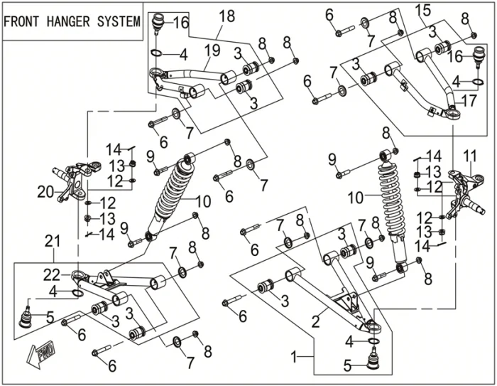 Купить запчасти - Подвеска передняя совместим c Квадрицикл Loncin XWOLF 300 Max (TRV350PRO). Всего 18 позиций. Оплата картой доставка по России.