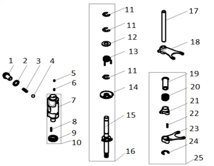 Купить запчасти - Вал копирный с вилками от двигателя СVT300 совместим с Квадрицикл Loncin XWOLF 300 Max (TRV350PRO). Всего 11 позиций.