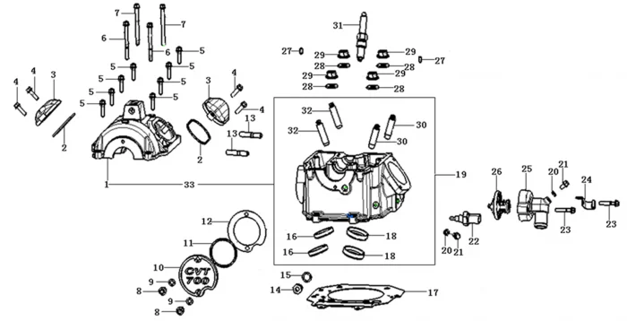 Купить запчасти - Головка цилиндра от двигателя СVT700 совместим с Квадроцикл Loncin XWOLF 700S. Всего 27 позиций.