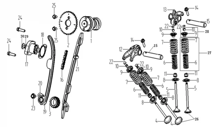 Купить запчасти - Механизм газораспределения от двигателя FE250 совместим с Мотоцикл LONCIN CR4II. Всего 23 позиций.