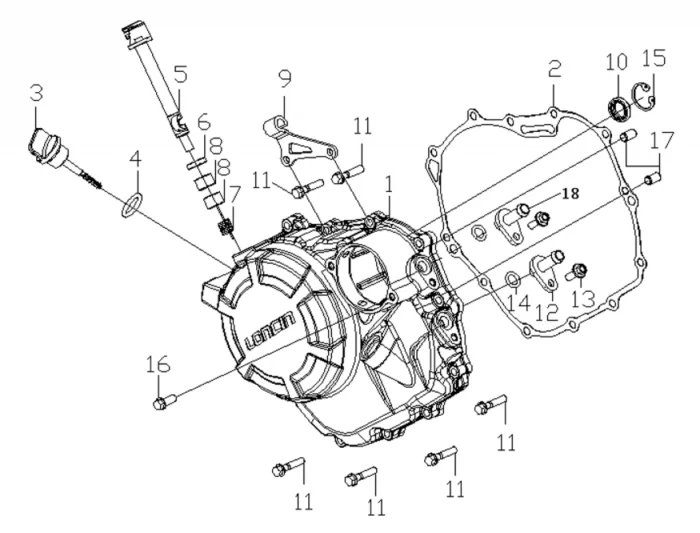 Купить запчасти - Крышка картера правая от двигателя FE250 совместим с Мотоцикл LONCIN CR4II. Всего 17 позиций.