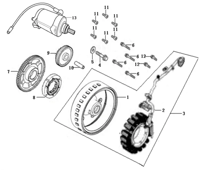 Купить запчасти - Генератор / Электростартер от двигателя KEL500F совместим с Мотоцикл VOGE CU525. Всего 12 позиций.
