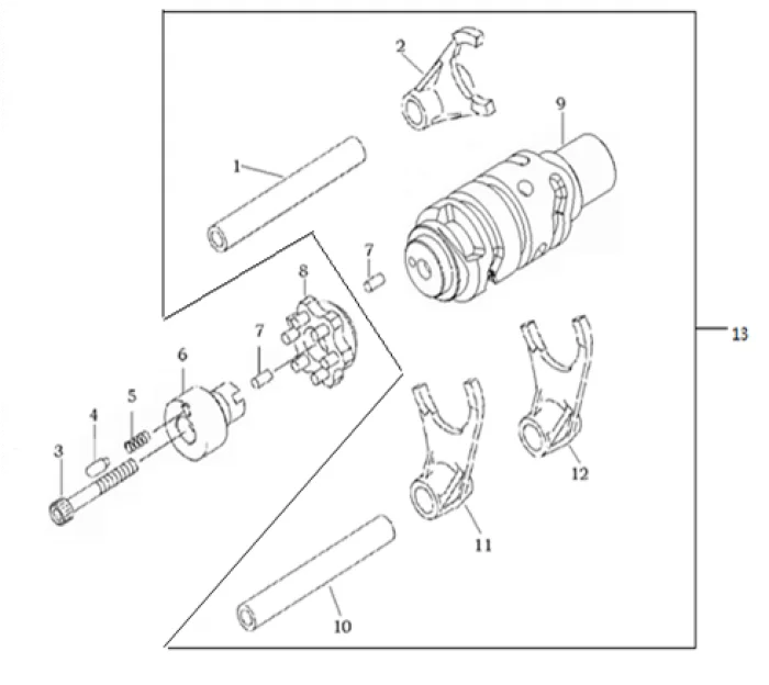 Купить запчасти - Вал копирный с вилками от двигателя YF300R совместим с Мотоцикл VOGE Rally 300. Всего 7 позиций.